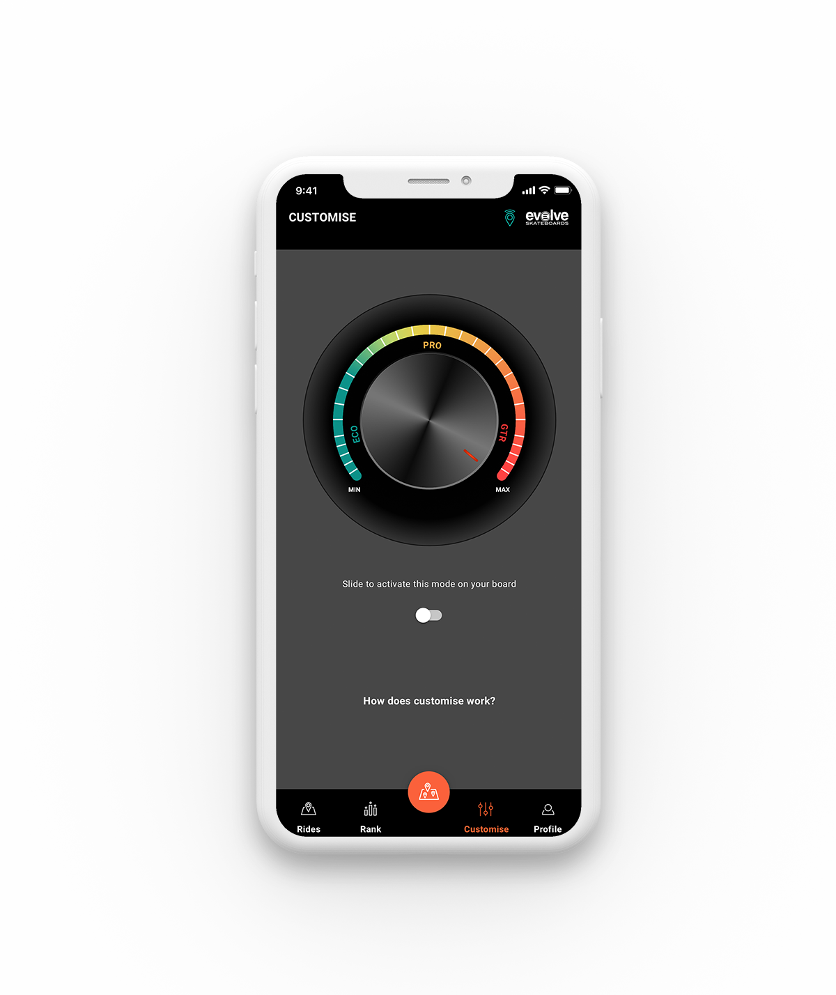 The Customise feature allows riders to increase the initial acceleration of their board via a Bluetooth connection.