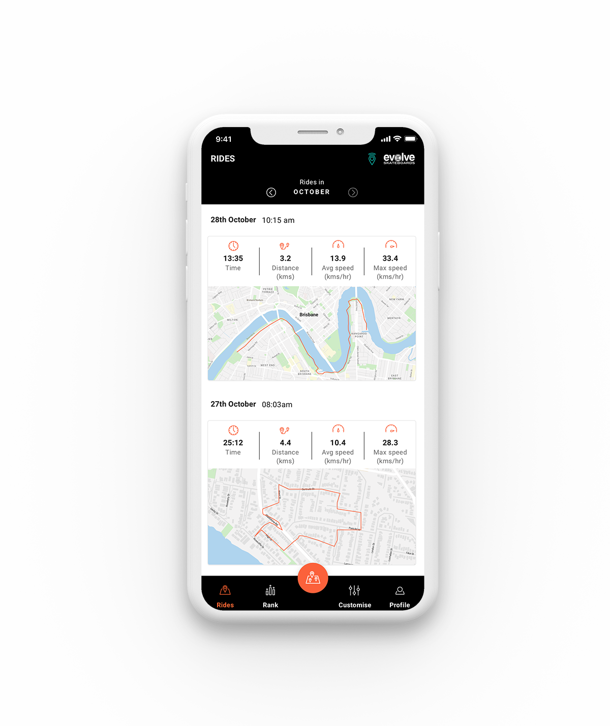Evolve are an electric skateboard company that have been producing high-quality skateboards for the past 10 years. The community around Evolve has always been incredibly supportive and engaged and it was for this community, that the app was intended to support. We were tasked with creating an app that would help enable further engagement and allow riders to more seamlessly share their experiences amongst the community.