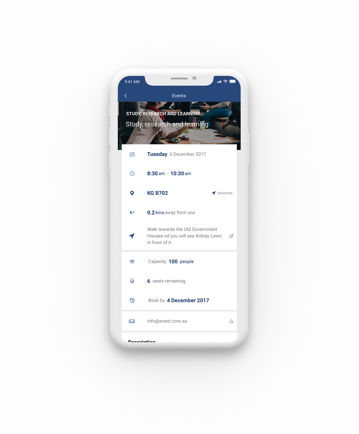 The result was an app that despite being highly complex, felt very familiar. Over the course of 18 months we developed a student dashboard, inbox, calendar, study hub (including access to grades, exams, and assessment information), shuttle bus timetable, parking availability around campus, wayfinding, and a student help hub.