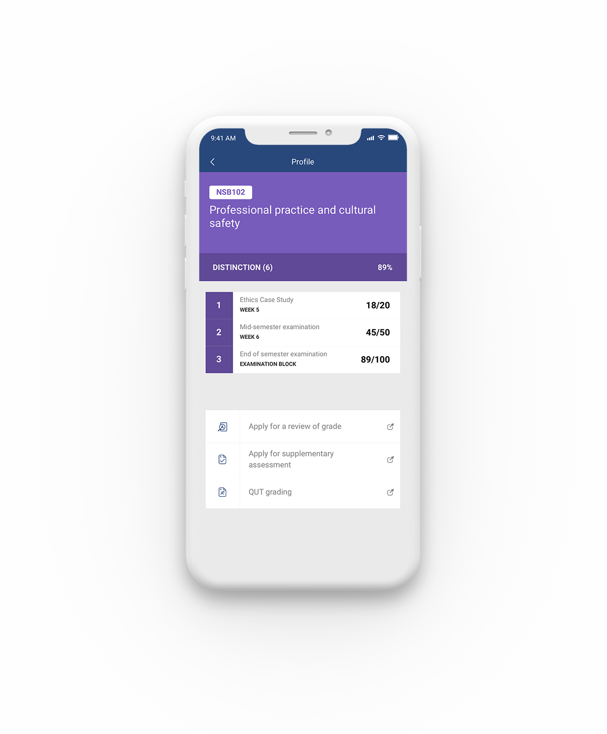 Students are able to find a complete history of their grades for a course, see how this affects their overall grade and apply for any reviews necessary.